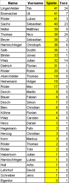 Statistik 1. Mannschaft zum Saisonabschluss 2013/14