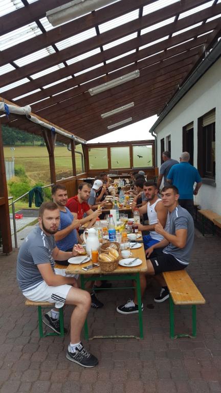 Ein schweißtreibendes Wochenende liegt hinter den Spielern und auch Aktiven des VfB Oberndorf. Freitag und Samstag fand das Vorbereitungs-Trainingslager des VfB 1 statt. Hierbei begann der Samstag mit einer Einheit bereits um 07:30 bevor ein gemeinsames Frühstück angeboten wurde. Im Anschluß stand die 2. Einheit um 10:30 Uhr an, bevor ab 12:30 ein gemeinsames Mittagsessen abgehalten wurde. Nachmittags besuchten fast alles Spieler und Offizielle das Teststpiel der 2. Mannschaft in Mernes (welches der VfB 2 mit 6:2 für sich entschied). Am Sonntag stand dann das 1. Testspiel im Rabengrund in Oberndorf statt. Gegner war Gundhelm/Hutten. Der VfB setzte sich deutlich mit 5:0 durch. Der Verein hatte an diesesm Sonntag auch Premiere für die Umsetzung des HFV-Hygienesystem aufgrund der aktuellen Corona-Situation. Hier konnte eine durchaus possitive Bilanz gezogen werden. Die Zuschauer hielten sich an die Vorgaben und der VfB hatte bei der Erfassung und Betreuung der 150 Gäste keine größeren Probleme. Das "Hygienesystem-Team" wird am Dienstag eine Bilanz des 1. Spiels ziehen und anschl. auch Optimierungen bereits kommenden Mittwoch angehen. Weiterhin wird auch an einem Konzept für den Kunstrasenplatz gearbeitet. Beim Spiel hielt der Gegner die ersten ca. 15 Minuten gut mit. Doch mehr und mehr konnte unser Team das Geschehen auf dem Platz übernehmen und ging durch Muminovic in der 16. Minute in Führung. Jessl legte in der 28. nach. Wiederrum Almir schraubte in der 31. auf 3:0 hoch. Zu diesem Zeitpunkt konnte der Gast nicht mehr viel entgegen setzen. Kai Helmchen erhöhte in der 33. gar auf 4:0 ! Nach der Hälfte eine Schrecksekunde für die Rabengrund-Kicker. Doch Deuker von den Gästen scheiterte am Torpfosten. In der 70. dann eine schöne Aktion der Neuzugänge Fedotov und von der Burg. Nikita ging und flankte präzise von der rechten Seite. Steven war da wo ein Torjäger zu suchen ist- nahm den Ball in der Box an und vollendete eiskalt zum Endstand von 5:0 !