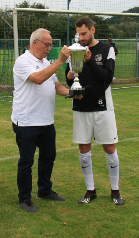 Ein wirklich spannendes Pokalfinale konnte der VfB Oberndorf vergangenen Sonntag für sich entscheiden und steht somit als Kreispokalsieger 2019/2020 fest. Damit verbunden ist gleichzeitig die Teilnahme am Hessenpokal 2020/2021! Die Auslosung der ersten Runde findet am 17.09. in Grünberg statt. Gespielt muss diese bis zum 30.09. sein ! Etwas nervös ging unsere Elf am Sonntag vor ca. 310 Zuschauern in Mittelgründau in die Partie. Als Startelf entschied Trainer Reinhold Jessl sich für folgende Formation: Schneider, N. Hagemann, L. Hagemann, Engel, Stoppel, L. Röder, Nix, Alagic, Helmchen, Yigit und Muminovic. Und Lukas Hagemann brachte in der 32. Spielminute sein Team in Front. Ganz eng wurde es in der 37. für den VfB. Orbs Stürmer Montaldo tauchte frei vor Marcel Schneider auf- dieser konnte jedoch in letzter Sekunde zur Ecke klären. In Halbzeit 2. erhöhte der VfB in Form von Helmchen auf 2:0! Doch in der Folgezeit waren die Jossgründer etwas von der Rolle und so konnte der FSV in der 60. Minute (Grauel) auf 1:2 verkürzen und in der 63. (Becirovic) gar ausgleichen ! In dieser Phase des Spiels sah es so aus, als würde unser Team das Spiel komplett aus der Hand geben. Doch wiederrum Torjäger Kai Helmchen mit seinem 2. Treffer in der 82. führte den VfB wieder zurück auf die "Siegesstraße" und so konnten die Jungs nach 90 Minuten einen historischen Pokalsieg feiern und taten dies auch ausgiebig in Mittelgründau, Bad Orb, Lettgenbrunn und zuletzt im Sportheim in Oberndorf. Auch am Montag ging die Party weiter bei Spielausschuss-Obmann Manuel Sachs gabs Frühstück und Bier !