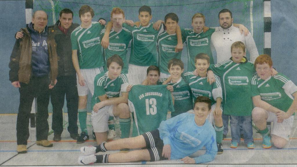 Die C-Jugendlichen der JSG Jossgrund haben sich mit einer bärenstarken Leistung den Hallenkreismeistertitel des Kreises Gelnhausen gesichert. Nach vier Siegen aus fünf Spielen in der Sporthalle in Rothenbergen landeten die Spieler von Trainer Tom Lingenfelder vor der JSG Freigericht / Hasselroth auf dem ersten Rang. Der Coach wollte keinen Spieler aus seinem siegreichen Team herausheben: „Es war in allen Spielen eine geschlossen starke Mannschaftsleistung mit einem kleinen Aussetzer gegen Bad Orb", zeigte sich Lingenfelder nach dem letzten Spiel hochzufrieden mit den Leistungen seiner Jungs. Nun geht es für die Jugendspielgemeinschaft aus dem Jossgrund zum Regionalfinale gegen die anderen C-Junioren-Kreismeister der Region. „Natürlich sind wir da dabei und wollen auch da den Pott holen", so die euphorische Ansage von Lingenfelder.