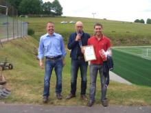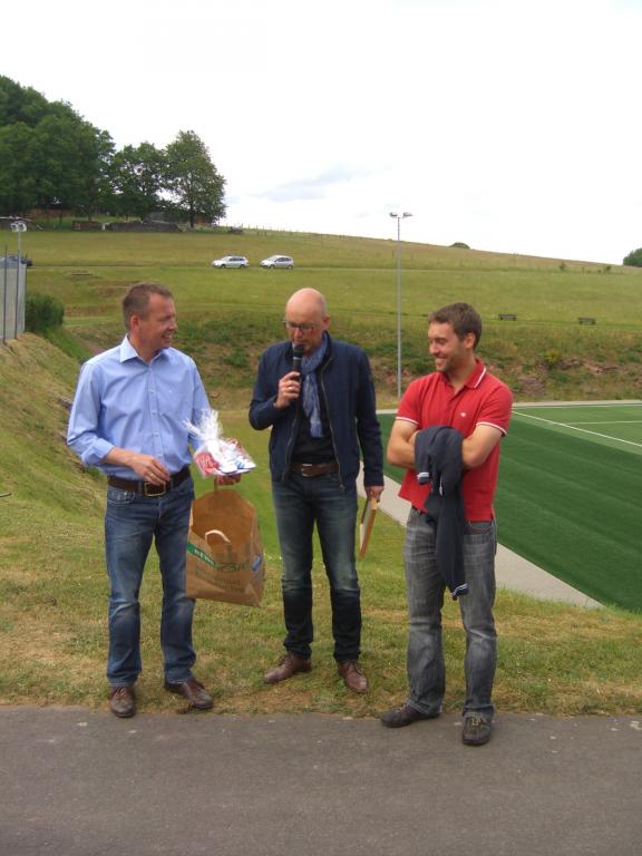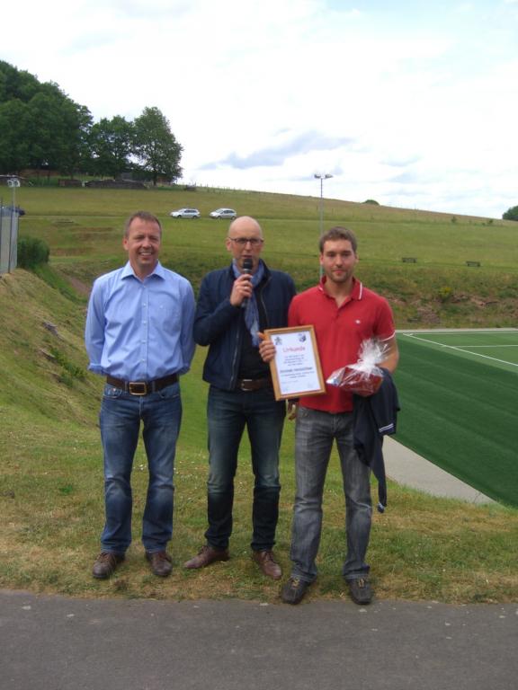Nachdem er vor kurzem stolzer Vater von Leo geworden ist, hat er bei der Ehrung, gleich die ersten Fußballschuhe für seinen Stammhalter von Günter Birkler geschenkt bekommen.