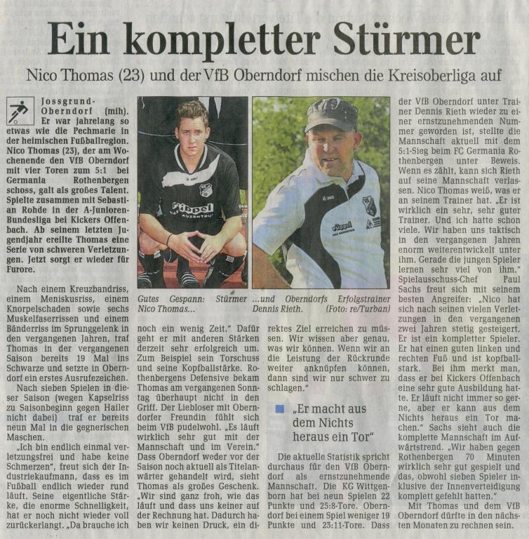 Ein kompletter Stürmer titelt die GNZ vom 17. September auf Seite 12 über Nico Thomas.