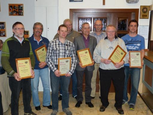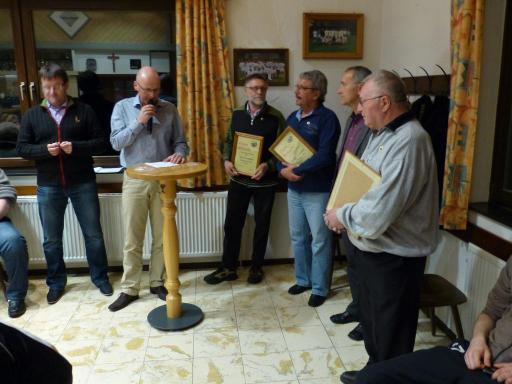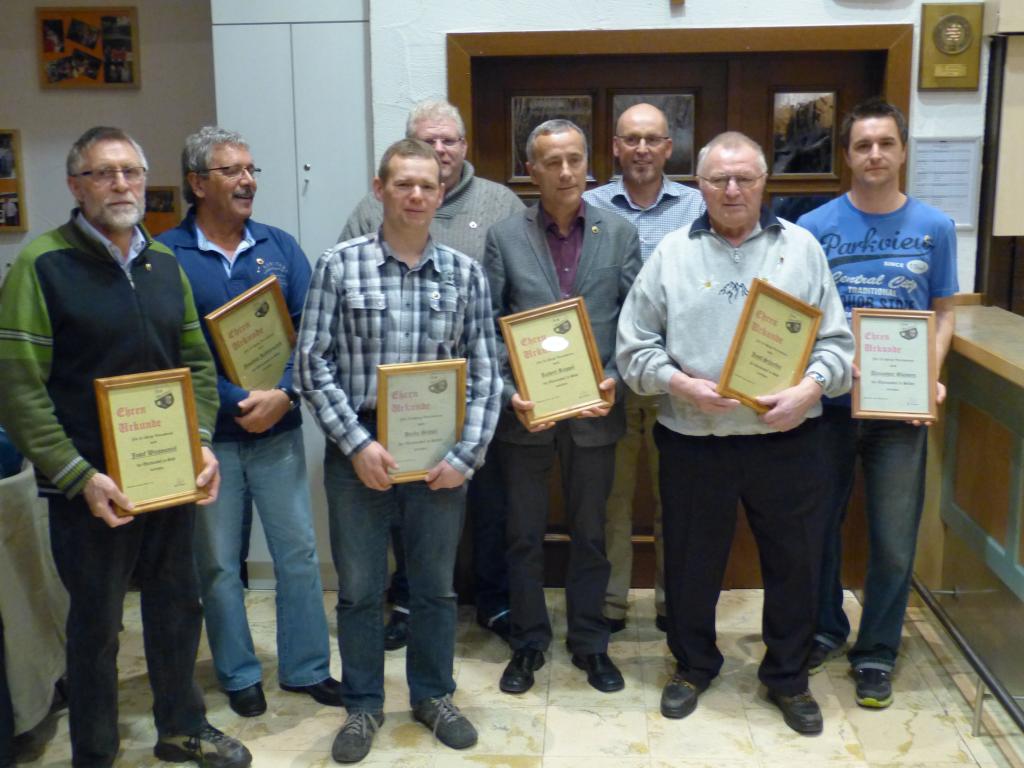 Für 50 jährige Mitgliedschaft wurden geehrt: Josef Schreiber, Joachim Rektorschek, Robert Ruppel und Josef Weismantel. Franz Keßler konnte leider aus persönlichen Gründen nicht an der Versammlung teilnehmen. Die Ehrung wird persönlich nachgeholt.