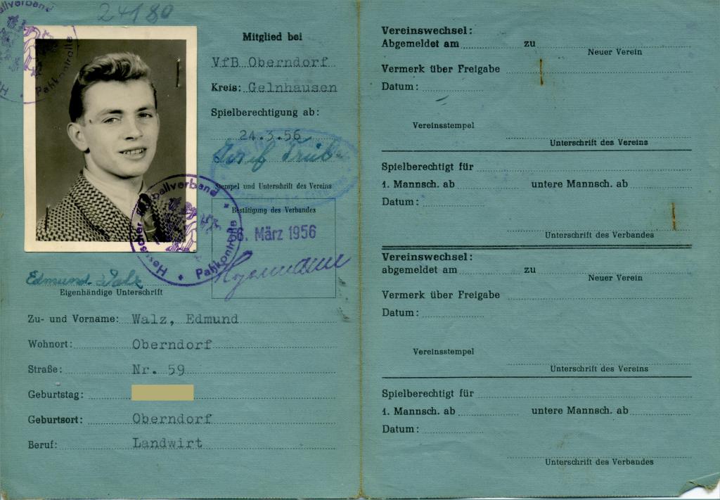 Der Spieler ist seit 24.3.1956 für den VfB spielberechtigt. Laut Spielerpass wohnt er im Haus Nr. 59 und ist von Beruf Landwirt.