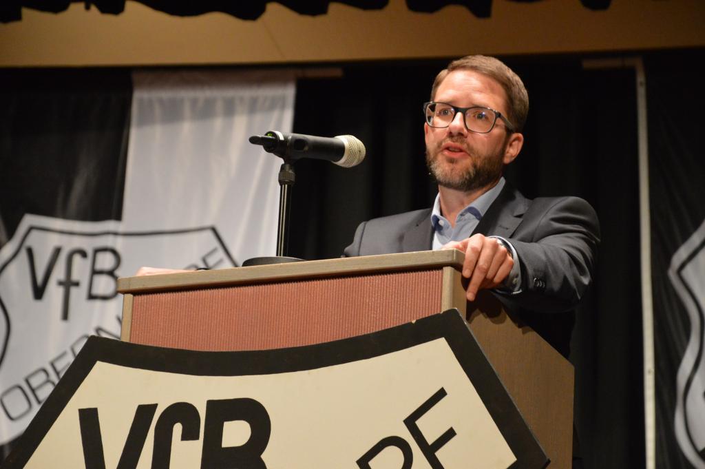 Der Startschuss in den Abend gab Günter Birkler mit seinem Rückblick auf die vergangen Jahre und die Begrüßung der Gäste. Moderator Bastian Walz – inzwischen in Mehrfachfunktion für den VfB-Vorstand tätig – führte souverän, kurzweilig und mit der gewissen Prise Humor durch den Abend. Sogar spontane Gesangseinlagen durften nicht fehlen, aber dazu später mehr.