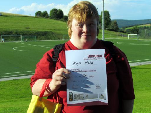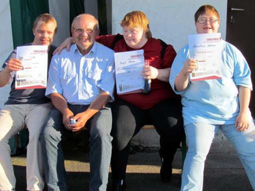 Jossgrund-Oberndorf (mfi). Voller Stolz präsentier­ten die Gäste vom LebMal-Club Gelnhausen ihre Urkun­den zum sportlichen Schnup­perabzeichen. Am Dienstag­abend waren sie zu Besuch am Sportgelände im Rabengrund. Der LebMal-Club ist seit 2005 eine Kooperation aus Lebens­hilfe und Malteser Hilfsdienst. Es handelt sich dabei um ein Freizeitangebot für Menschen mit Behinderung. Alle 14 Tage treffen sich Teilnehmer aus dem gesamten Main-Kinzig-Kreis in den Räumen der Ge­schäftsstelle in Gelnhausen zu gemeinsamen Aktivitäten. Ein­mal im Jahr feiern die LebMal-Mitglieder ein gemeinsames Sommerfest.