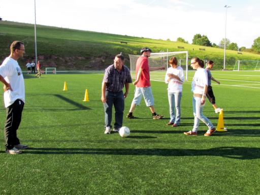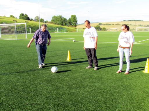 „Es handelt sich dabei um ei­ne Aktion des DFB, die wir ger­ne im Kinder- und Jugendbe­reich einsetzen und nun auch für diese Veranstaltung nutzen konnten. Vor allem möchten wir Menschen dazu animieren, sich zu bewegen", informierte Vereinsvorsitzender Günter Birkler. Abgeschlossen wurde der sommerliche Abend mit ei­nem gemeinsamen Grillfest. Leckere Salate und Jossgrün­der Grillwürstchen fanden da­bei schnell ihre Abnehmer. Ne­ben dem Sportverein, der als Hauptorganisator fungierte, hatten ein Lebensmittelge­schäft und eine Fleischerei für das Essen und der Quickstock­verein für die Getränke ge­sorgt. Gemeinsam mit den Fuß­ballern der zweiten Mann­schaft versammelten sich die Gäste des LebMal-Clubs dann noch zu einem Erinnerungsfoto an dieses ebenso schöne wie sportliche Sommerfest.