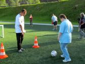 Dieses fand heuer nun in Verbindung mit einem Bewe­gungsparcours an und auf dem Kunstrasenplatz des VFB Oberndorf statt. Die Verant­wortlichen des Vereins hatten drei Stationen auf dem Rasen­platz aufgebaut, an denen sich die rund 30 Teilnehmer mit großer Spielfreude vergnügten. Ob nun ein Dribbelkünstler, ein Kurzpass-Ass oder ein Elfer­könig zu küren war, unter der fachkundigen Anleitung von Helmut Ruppel und Günther Birkler wurden die einzelnen Aufgaben mit Spaß und Eifer bewältigt. Als Belohnung gab es eine offizielle Urkunde vom Deutschen Fußballbund.