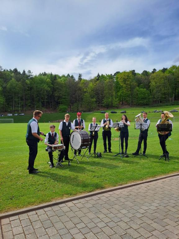 Dann, um 15.30 Uhr: Gleich beginnt auf dem Sportplatz im_Rabengrund das Heimspiel des VfB Oberndorf gegen die SG Marköbel. Dieses Fußballspiel findet in einem besonderen Rahmen statt. Der Musikverein 1964 Oberndorf unterstützt die Oberndorfer Fußballer - ganz wie am Kommersabend im vergangenen Jahr versprochen - mit Musikeinlagen vor dem Spiel, in der Halbzeit, und auch bei der „dritten Halbzeit“ nach dem Spiel.