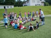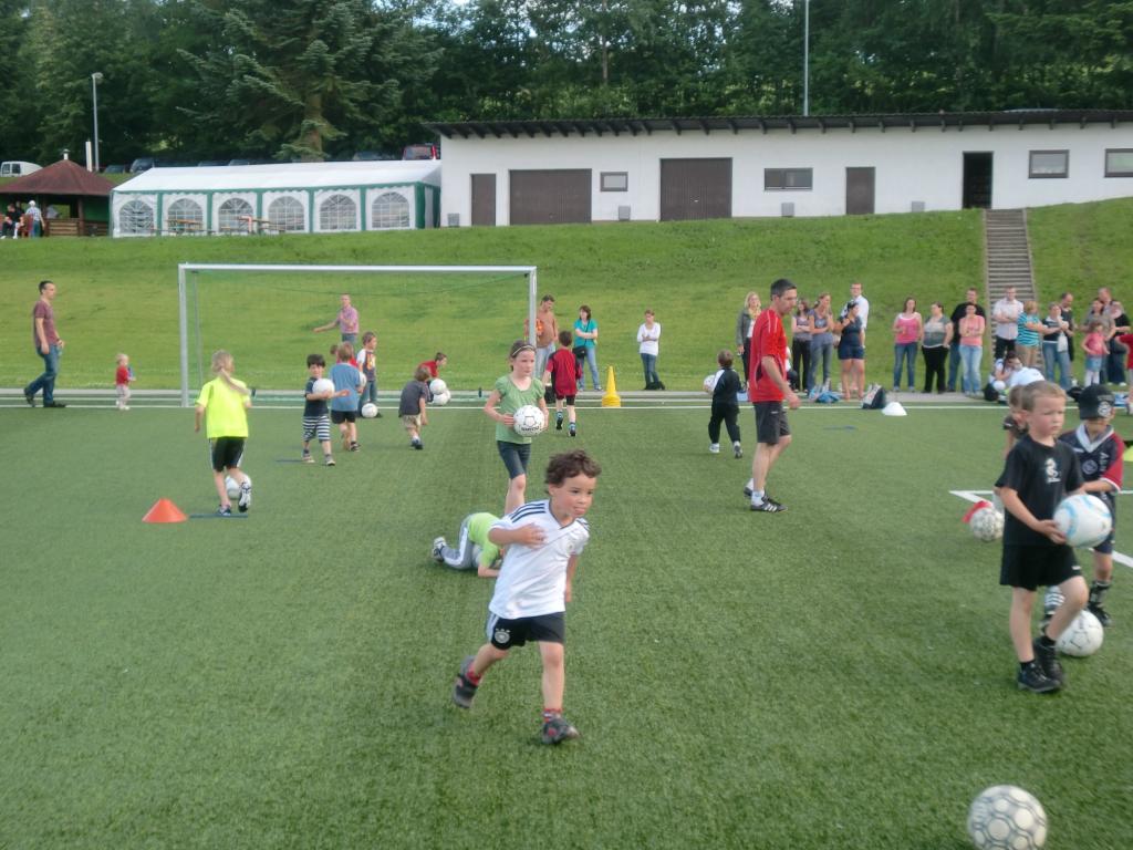 Vor den Augen der Eltern rannten und hüpften die Kids mit Begeisterung über den Kunstrasen, versuchten sich gegenseitig Bälle abzujagen und in Ringe oder über Linien zu placieren.