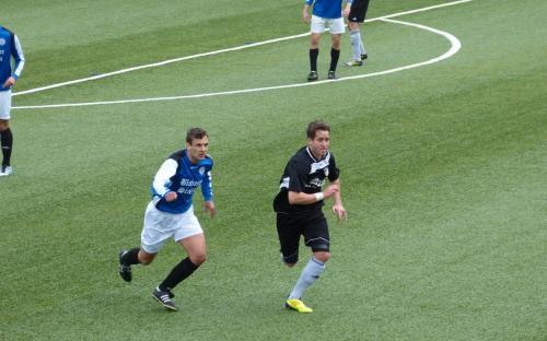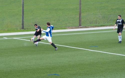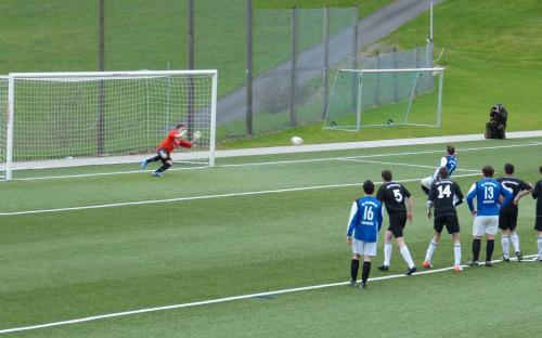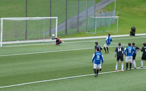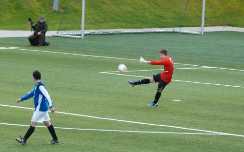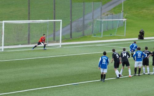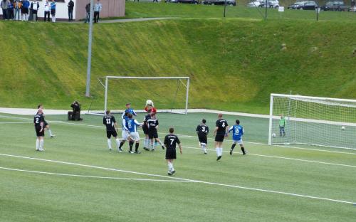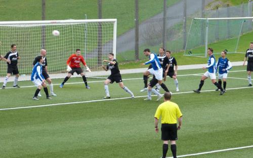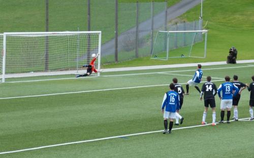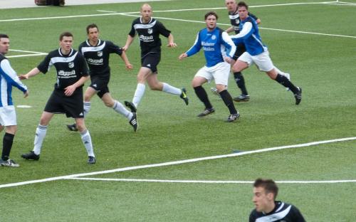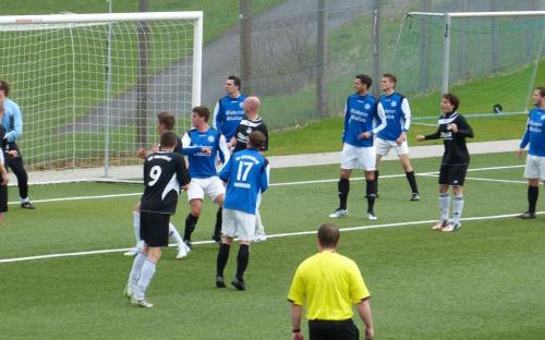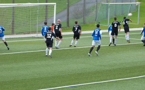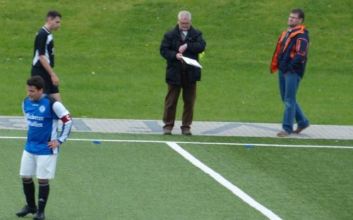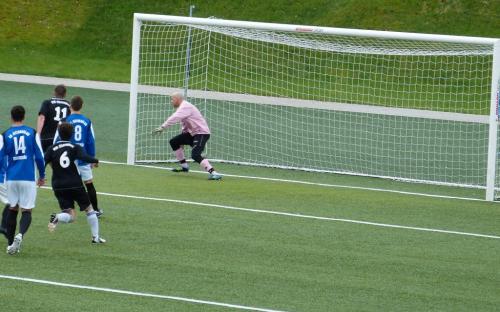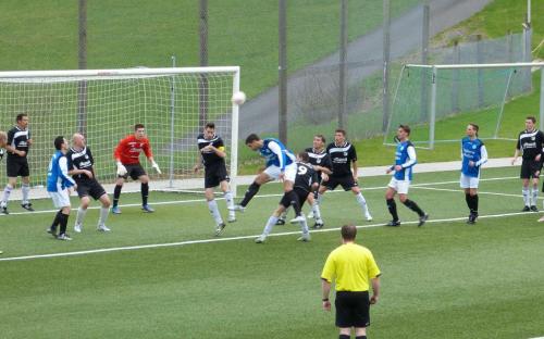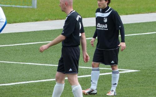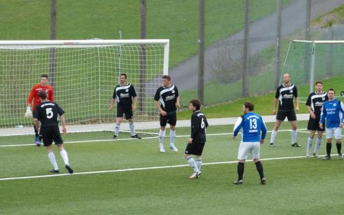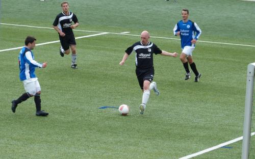 Bei einem scharfen Schuss in unseren Strafraum folg der Ball einem Spieler gegen die Hand. Der Schiedsrichter entschied dennoch auf Strafstoß. "Katze" Matthias Neiter konnte den Strafstoß abwehren. Erst kurz vor Schluß überwand Uli Eisenacher den eigenen Keeper. Matthias Neiter wollten den Ball aufnehmen. Uli hat aber vorher mit der Fußspitze geklärt :-)