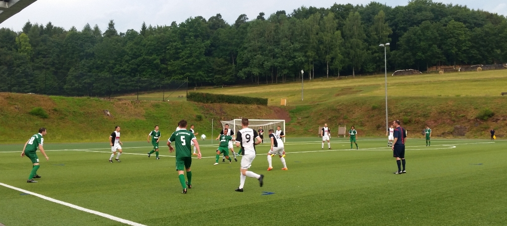 In Halbzeit 1 dominiert unser Team den bayrischen Gast und geht in der 15. durch Torjäger Nico Thomas in Führung. Schneller Einwurf von Kapitän Tim Lingenfelder, Nico geht halbrechts ab und überlupft Frammersbachs Torhüter.