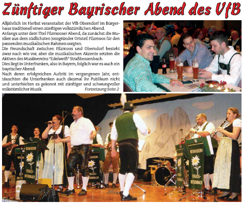 Zünftiger Bayrischer Abend des VfB liest man auf der Titelseite des Jossgründer Blättchen vom 16. November 1913. Details siehe Bilder (zum Vergrößern einfach anklicken)